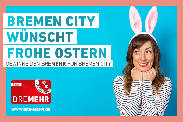 Das Beste: Jeder kann zusätzlich an einer Sonderverlosung für einen BreMEHR teilnehmen. Und so gehts: Zwischen dem 01. und dem 08. April Bremen City per E-Mail an bremehr@bremen-city.de: „Frohe Ostern“ wünschen, Adressdaten angeben, und mit etwas Glück einen BreMEHR in Höhe von 100 Euro geschenkt bekommen.